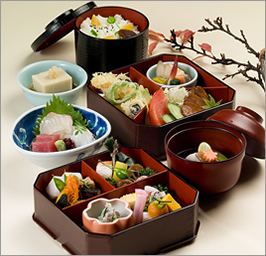 【翠-2】会席くずし松花堂5,500円(本体)5,940円(税込) 箱内:煮物・焼物・揚物・強肴・八寸・酢の物/造里・茶碗蒸し(夏季は玉子豆腐素麺)・吸物・御飯縦24.8×横36.5×高さ5.8cm